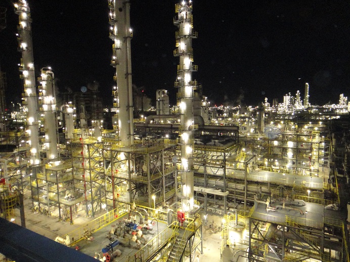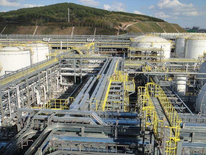 本装置包含36个主项,包括钢结构制作安装、地下管道安装(含给排水管道中的阀门井、检查井)、接地网工程、静设备、设备平台梯子制安、动设备、工艺管道、电气、电信、仪表等安装工程及电气仪表的调试、单机试运、配合开车服务等。 主要工程量有钢构2.5万吨,动静设备850台/套,电仪设备10332台/套,管道102万吋,试压包1900个,电缆3600公里,电仪回路1.5万等。工期2020年4月12日至2021年10月23日。 100单元111框架 100单元103框架 100单元121框架 200单元环氧化框架 300单元PO精制框架 PO精制和PMA单元 PO球罐区 SM单元 苯乙烯罐组 苯乙烯和中间物料罐组泵区 电仪接线箱 罐区管廊 过氧化单元 乙苯单元 主管廊及苯乙烯罐组 装置夜景 中交合影 |
